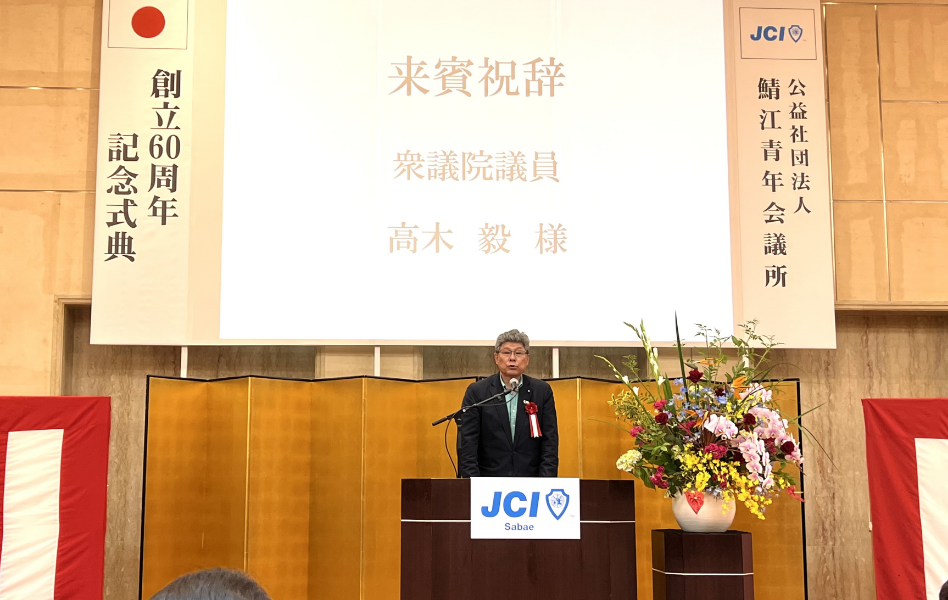鯖江市嚮陽会館にて、鯖江青年会議所の創立60周年記念式典が開催され、来賓として出席させていただきご挨拶いたしました。