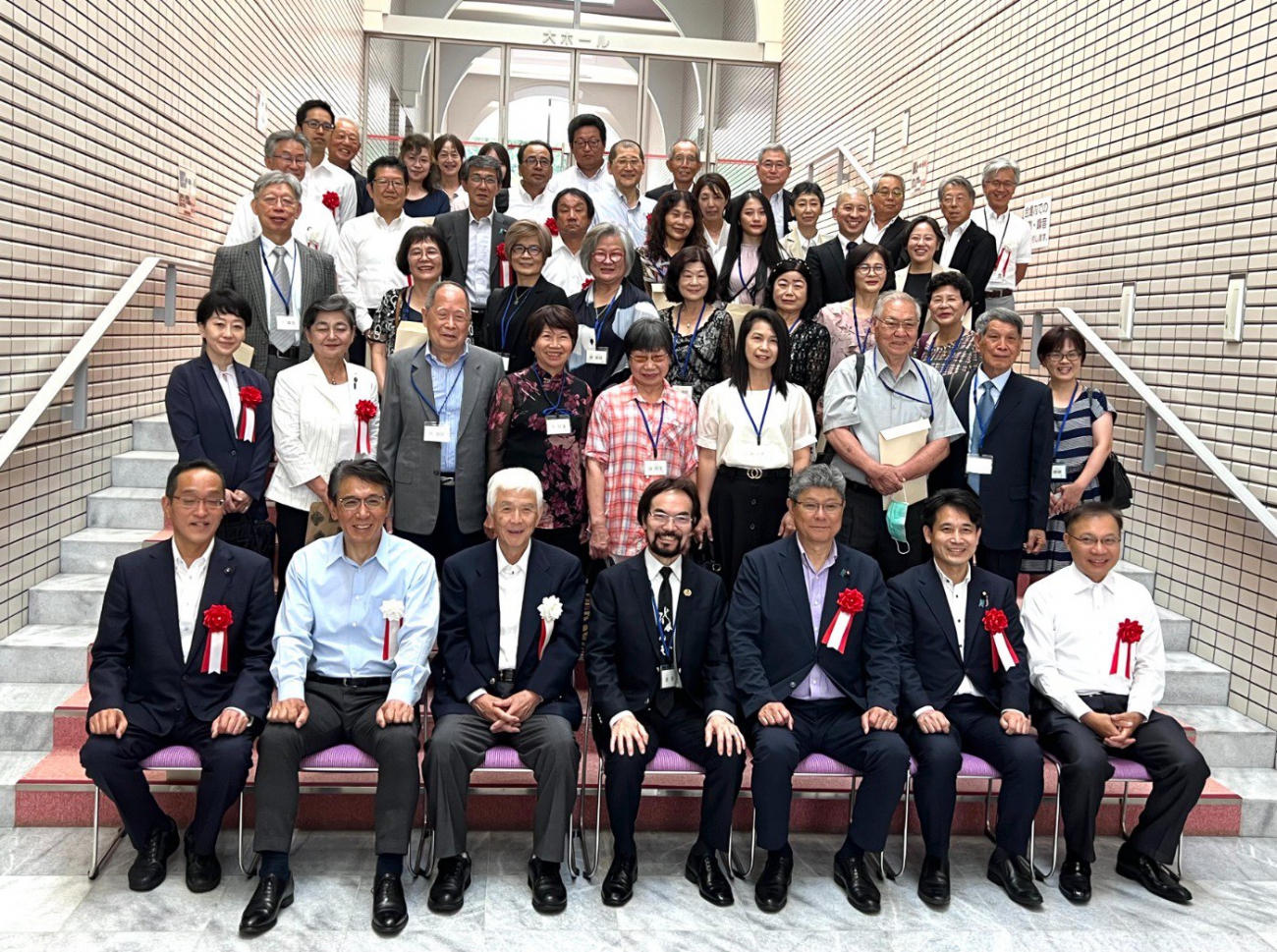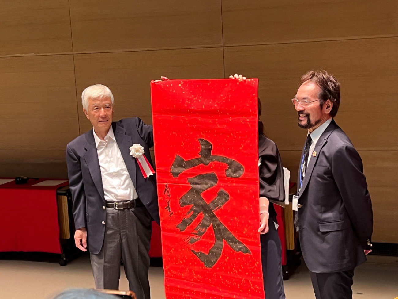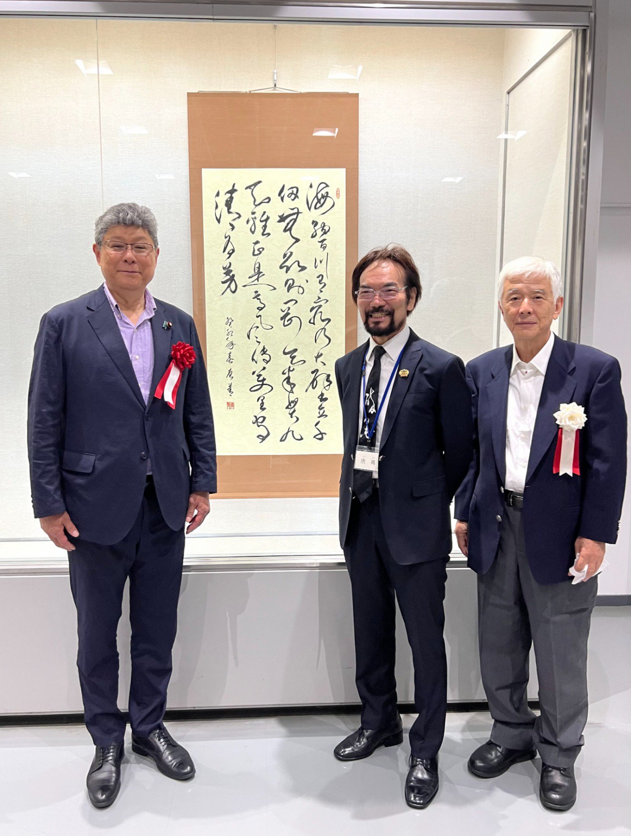 記念式典には、唐青氏と使節団16名が来日。 揮毫式や記念撮影などが行われました。