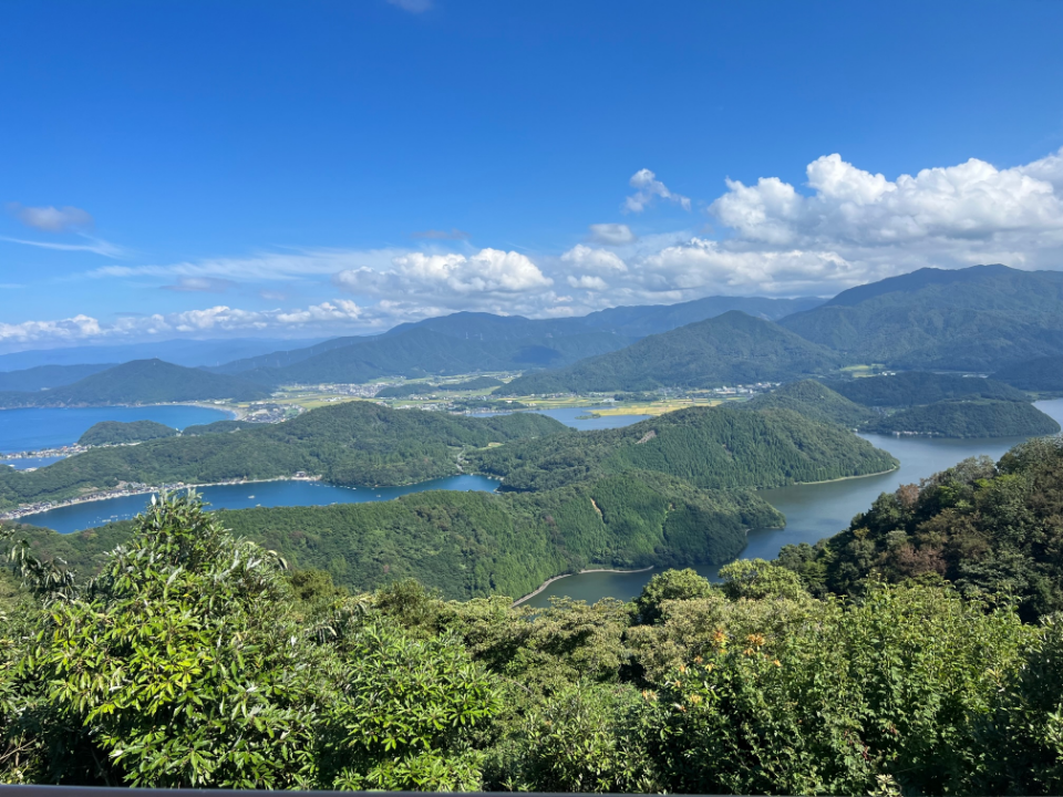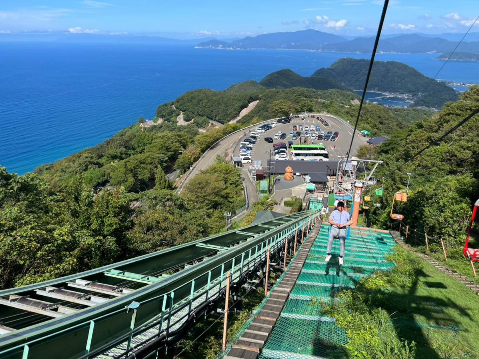 第一駐車場からリフトで登る山頂公園には、三方五胡や若狭湾の景色が楽しめるテラスが整備され、360度のパノラマビューが楽しめます。