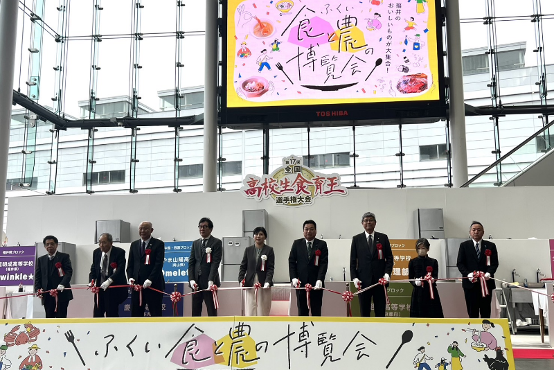 福井駅前周辺を会場に、「ふくい食と農の博覧会」が開催されました。ハピテラスでの行われたオープニングセレモニーに参加させていただきました。