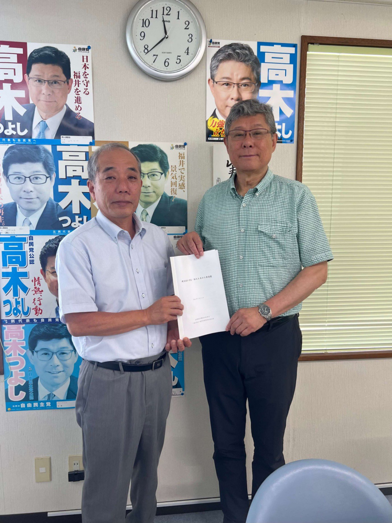 福井県建築組合連合会より政策に関する要望をお伺いし、要請書をお預かりしました。