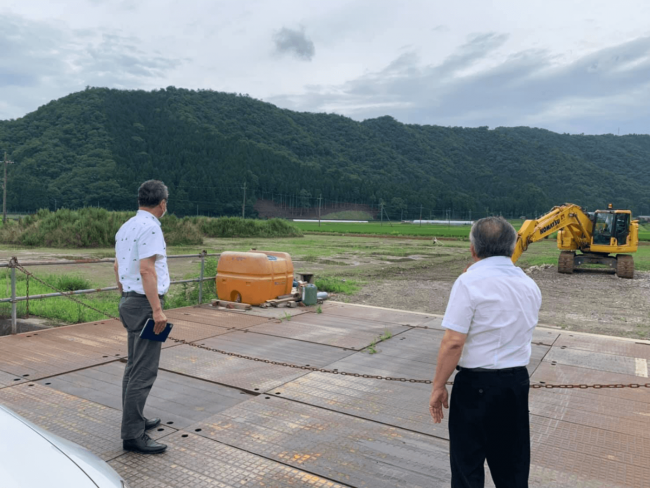 小浜市太良庄、舞鶴若狭自動車道4車線化工事により発生する残土を利用しての圃場(田んぼ)かさ上げ工事現場視察。