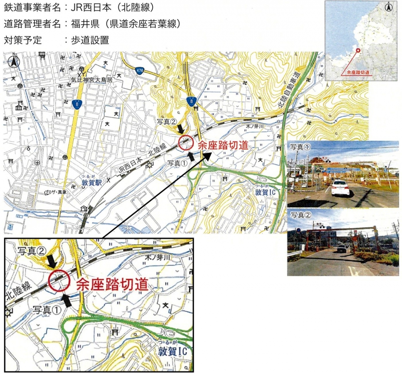 余座踏切道(敦賀市)が、国土交通大臣より「改良すべき踏切道」として指定されました。(令和4年1月21日・新規指定63箇所)