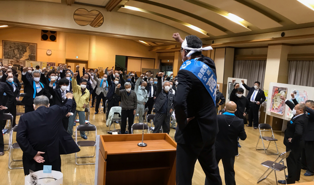 『がんばろう三唱』では皆さんが一緒に声をあげてくれ、会場は拍手に包まれました。