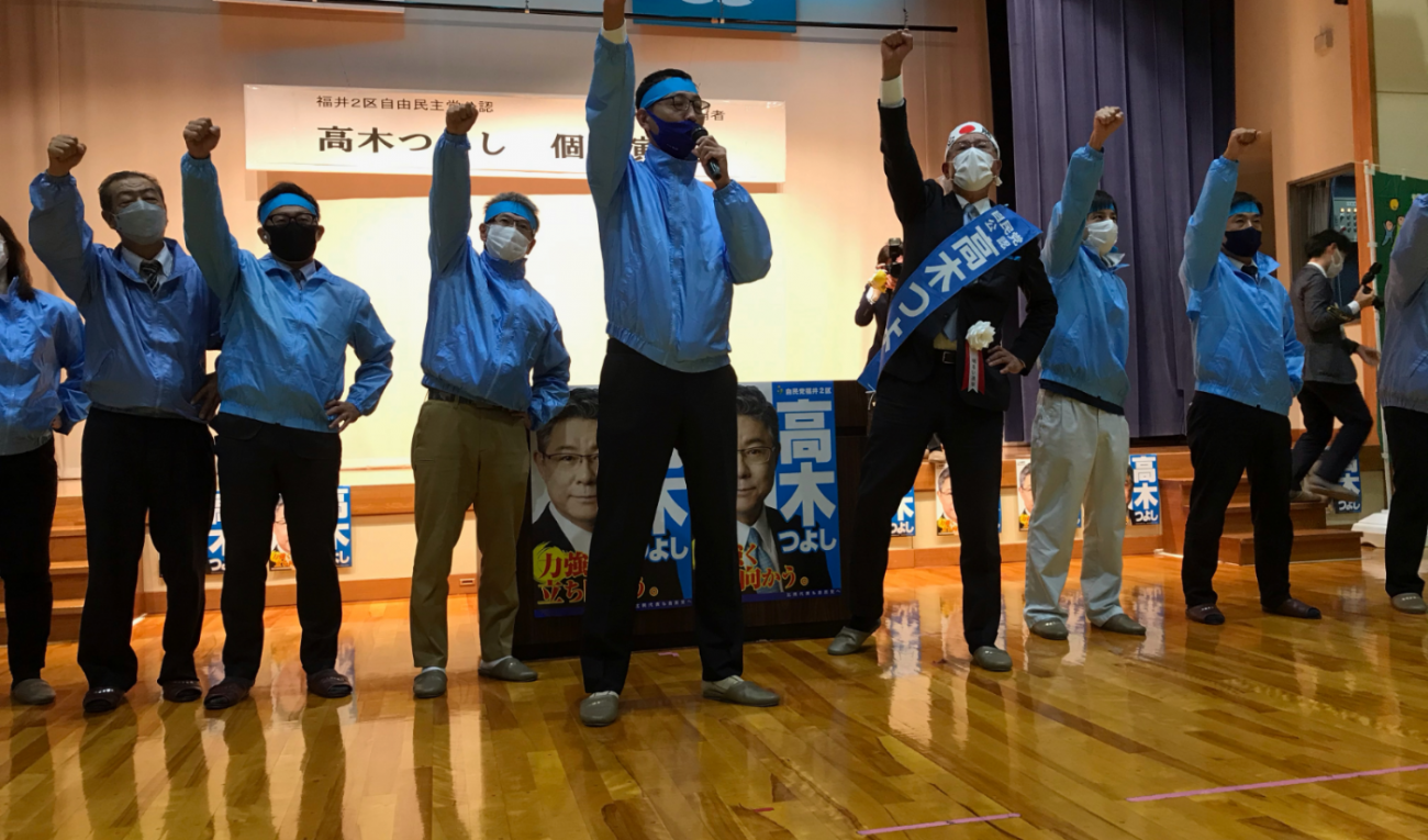 自由民主党美浜町支部 青年部と女性部の活力ある『がんばろう三唱』で、会場は拍手に包まれました。