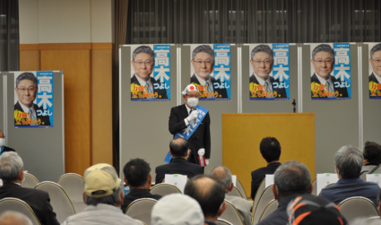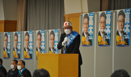 選挙戦も終盤に入り、会場は緊張感ただよう空気ながらも、ユーモアを交えた応援弁士の方々のお話に時折笑いが漏れるなど、暖かい雰囲気の個人演説会となりました。