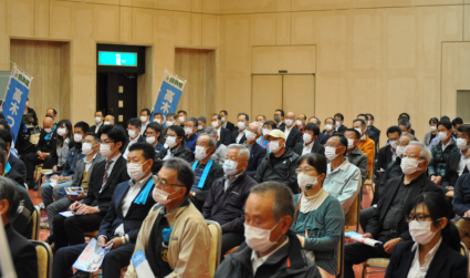 会場となった多目的ホールには間隔を広めに取りつつ会場いっぱいに椅子が並べられ、十分な席数を確保していただきました。その席も、個人演説会が始まる頃にはほとんど埋まる状況となりました。
