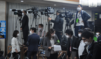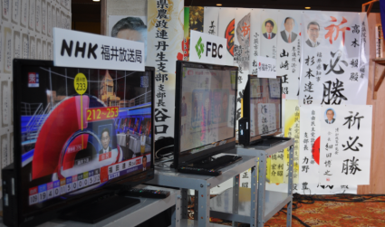 当落の結果を待つ選挙事務所内の様子